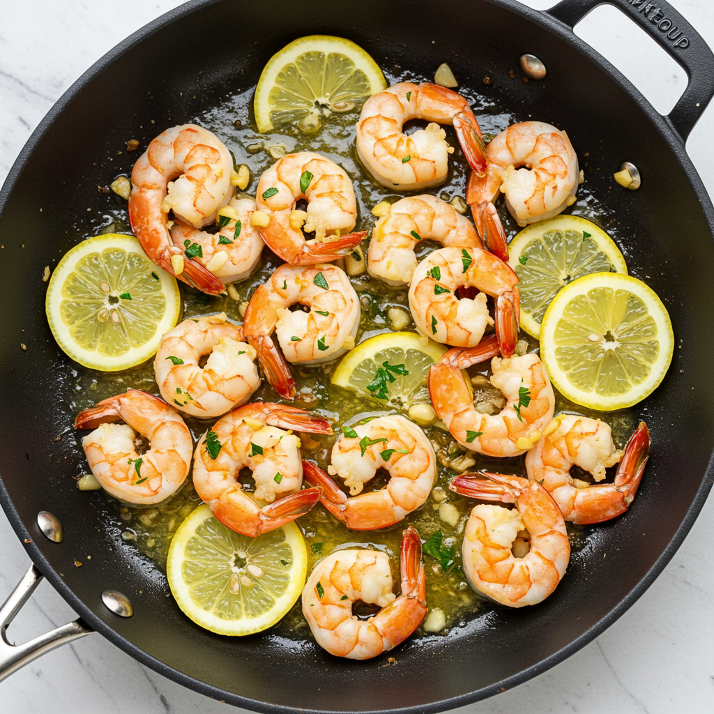 4. Camarones al limón y al ajillo en una sola sartén